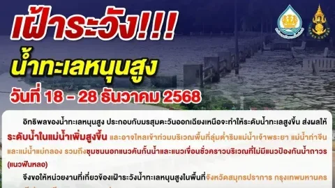 สำนักงานทรัพยากรน้ำเผย "ระวังน้ำทะเลหนุนสูง"